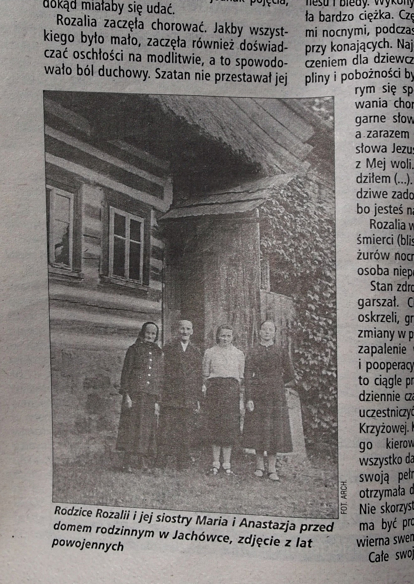 Rozalia Celakówna urodziła się 19 września 1901 r. w Jachówce. Przez 20 lat pracowała w Szpitalu św. Łazarza w Krakowie, gdzie z wielkim oddaniem i miłością opiekowała się chorymi na oddziale skórno-wenerycznym. Jej praca była nie tylko służbą zawodową, ale przede wszystkim ofiarą serca, przepełnioną wiarą i troską o cierpiących.